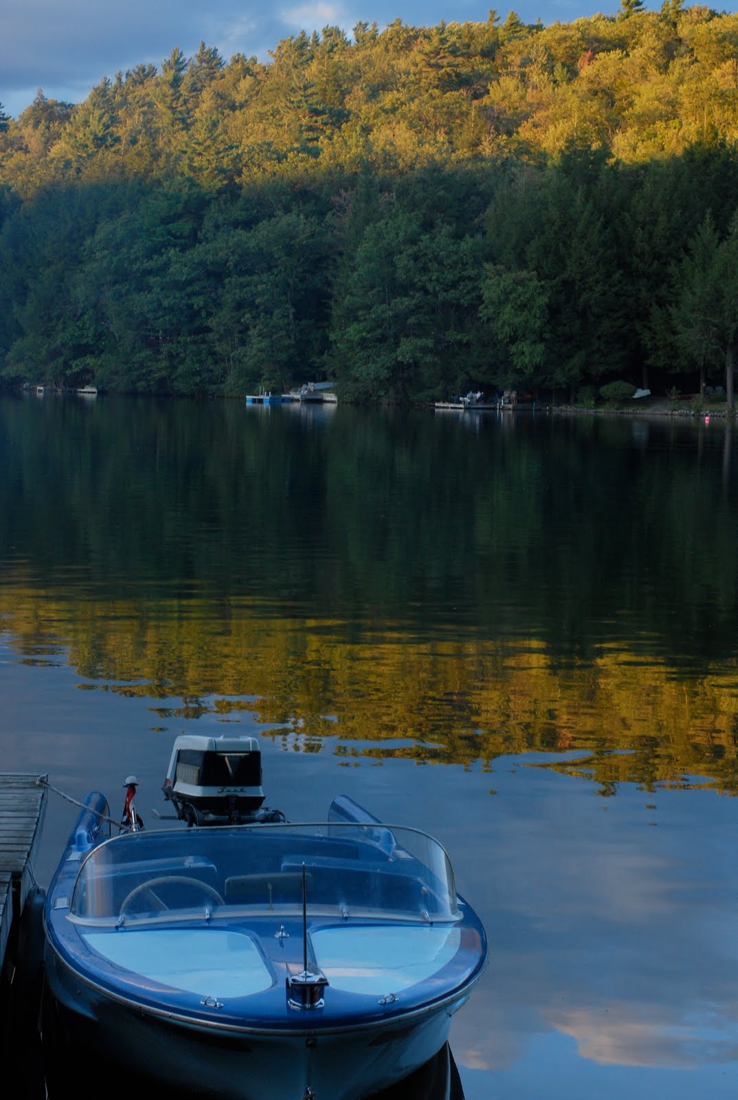 The old blue boat. Runs like a champ, except at high speeds and then it sounds like the fiberglass bottom is going to fall out. Original Evinrude engine.