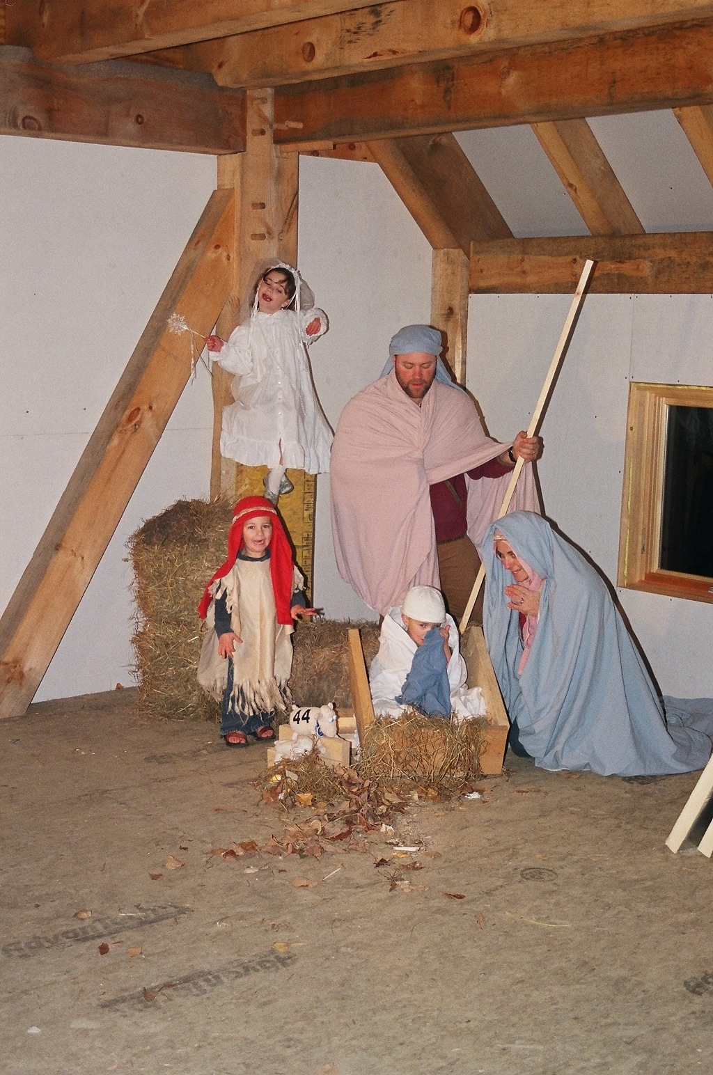 And in this outtake Claire can't seem to take flight. And the lighting is all off. And baby Jesus is looking at the Virgin Mary. And one of the wise men is looking at Paul Bunyan, whose robe fell off. And this was the first year we started bribing our children with candy to sit and do what we're telling them to do and to not put up a fuss.